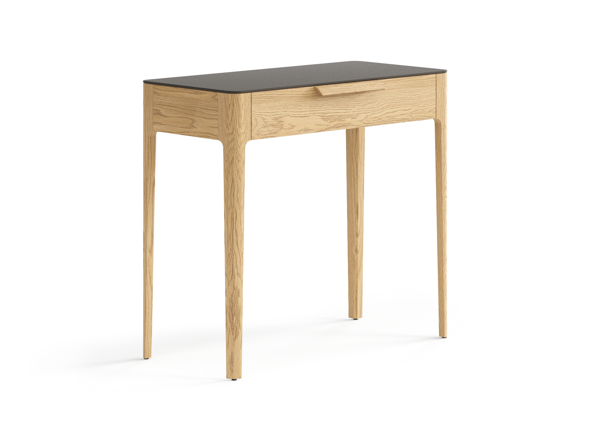 Консоль с двумя выдвижными ящиками на высоких элегантных опорах идеально впишется в любое помещение вашего дома и сделает его особенным. Изысканно сглаженные формы подчёркивают теплоту дерева, наполняют пространство природной гармонией. Скрытые направляющие ящиков с доводчиками и ручки в форме крыла делают пользование консолью мягким, уверенным и максимально комфортным. Столешница выполнена из керамогранита, крепкая поверхность приятна на вид и на ощупь. Ваза с букетом свежих цветов, любимые сборники литературы и тёплый торшер на консоли создадут истинный уют.