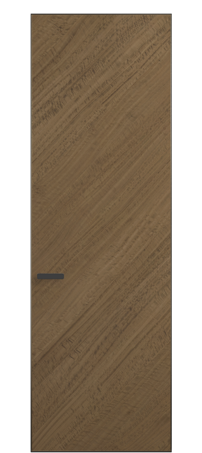 Полотно Rift в скрытом алюминиевом коробе становится полноценным элементом декора. В коллекции представлено 9 моделей дверей в высоте до 3 метров. Рисунок раскладки шпона варьируется от простого до сложного. «Рубашка» для каждого полотна подбирается вручную по цвету, текстуре и фактуре.