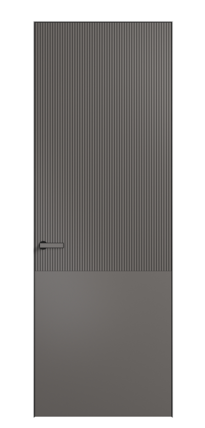 Это полотна с рельефной фрезеровкой. Этот прием делает интерьер объемным, тактильным, вносит интересную текстуру и создает современный образ. Волнистый рельеф может быть выполнен по ламелям из массива дуба в древесных матовых отделках, либо исполнен по натуральному и экологически безопасному материалу — ХДФ, покрытому гладкой эмалью актуальных оттенков.