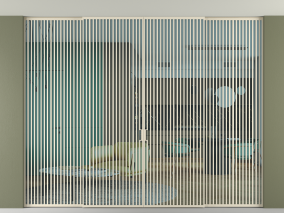 Во всех алюминиевых перегородках, независимо от типа установки, используется компланарный раздвижной механизм, благодаря которому декоративная крышка и полотно находятся в одной плоскости.